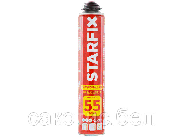 Пена монтажная профессиональная всесезонная STARFIX Gunfoam (850мл) (Выход пены до 55 литров)