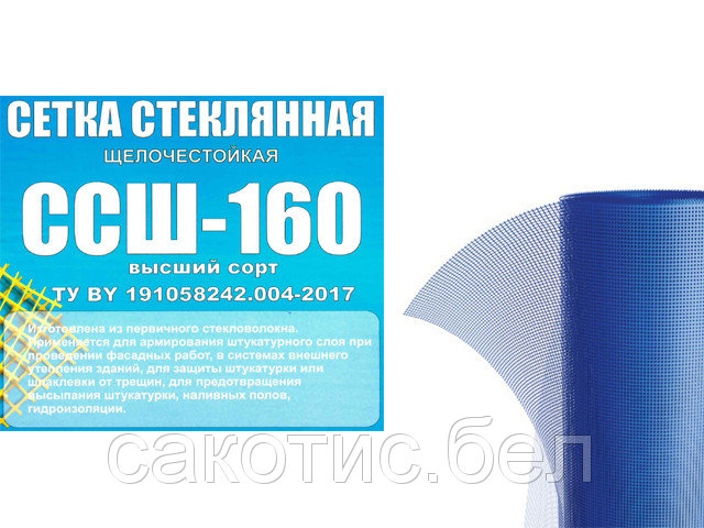Стеклосетка штукатурная 5х5, 1мх50м, 160 гр/м2 синяя (высший сорт) (ССМ)